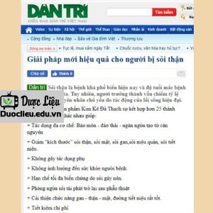 Thành phần của sản phẩm được chứng minh tác dụng bào mòn, giảm kích thước và làm tan viên sỏi đường tiết niệu.